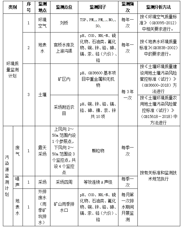 (6)招標(biāo)范圍及內(nèi)容:對(duì)興天礦業(yè)諭興礦進(jìn)行環(huán)境監(jiān)測(cè)和檢測(cè),包括但不限于土壤、地下水、廢水、廢氣、噪聲等污染源進(jìn)行監(jiān)測(cè)和檢測(cè),每季度出具監(jiān)測(cè)和檢測(cè)報(bào)告。監(jiān)測(cè)和檢測(cè)報(bào)告需滿足各級(jí)主管單位、國家法律法規(guī)、行業(yè)檢測(cè)標(biāo)準(zhǔn)、《滁州市興天礦業(yè)有限公司安徽省天長市諭興地區(qū)建筑用玄武巖礦年產(chǎn) 800 萬噸露天采礦項(xiàng)目環(huán)境影響報(bào)告表》中所涉及范圍等要求,保證審批順利通過。